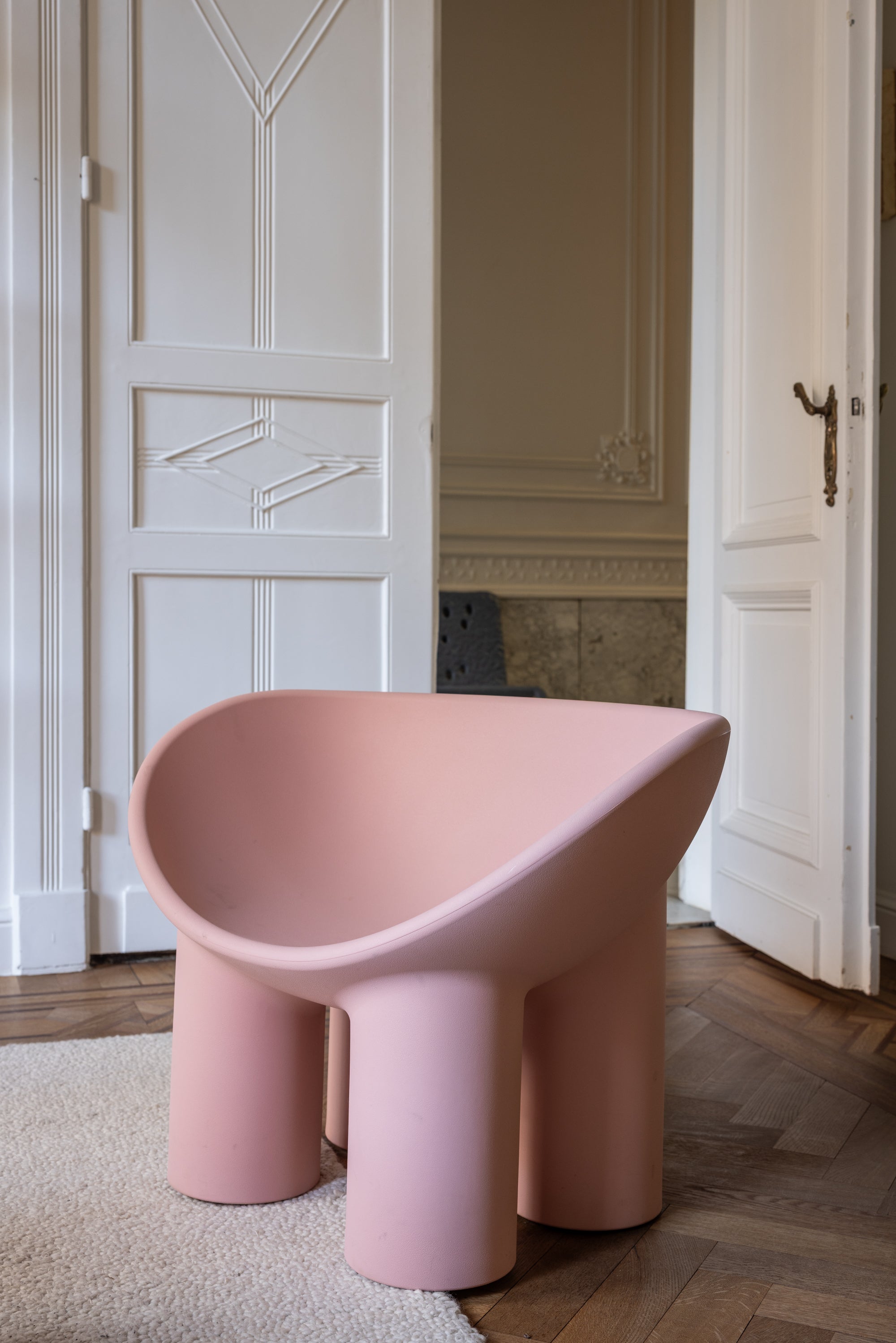 De Driade van Roly Poly, ontworpen door Faye Toogood, is een sculpturale stoel met een speelse uitstraling. De brede poten en ronde vormen geven haar een bijna kinderlijke charme. Gemaakt van gegoten polyethyleen, stevig maar licht, en in roze uitgevoerd voor een zachte, vriendelijke look. Toogood staat bekend om haar experimentele ontwerpen die kunst en functie combineren. De Driade is precies dat: een stoer, grappig en toch elegant statementstuk.
