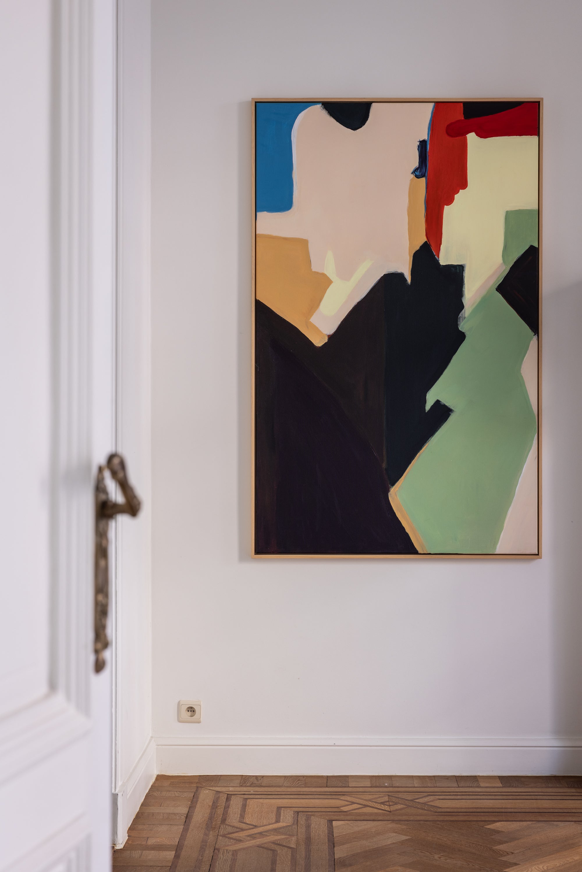 Konijn is een schilderij van de Belgische kunstenaar Louise Van Hemeldonck, bekend om haar kleurrijke en intuïtieve beeldtaal. In haar werk combineert ze figuratie met expressieve penseelstreken en levendige kleurcontrasten. Dit schilderij toont haar typische speelsheid en directe manier van schilderen: herkenbare vormen worden omgezet in iets persoonlijk en bijna kindlijks, zonder naïef te zijn. Van Hemeldonck werkt vaak vanuit gevoel en improvisatie, wat Konijn een spontane, energieke uitstraling geeft die meteen in het oog springt.