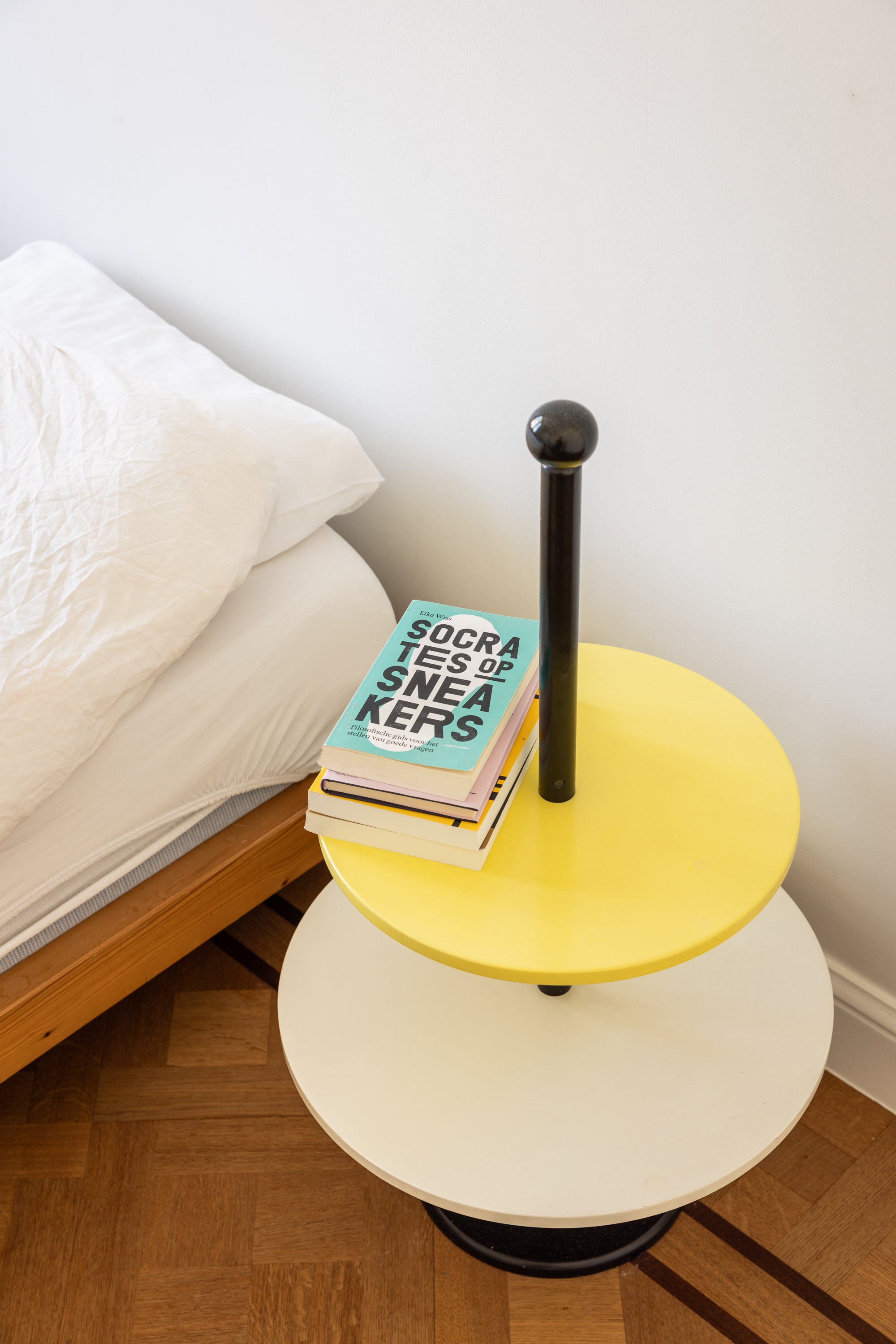 Deze Memphis-geïnspireerde tafel is een ode aan de postmoderne stijl uit de jaren tachtig. De grafische lijnen, felle kleur en speelse proporties verwijzen duidelijk naar de ontwerpen van Ettore Sottsass en zijn collectief. Hoewel de maker onbekend is, ademt dit stuk de typische Memphis-geest: vrijheid, kleur en humor.